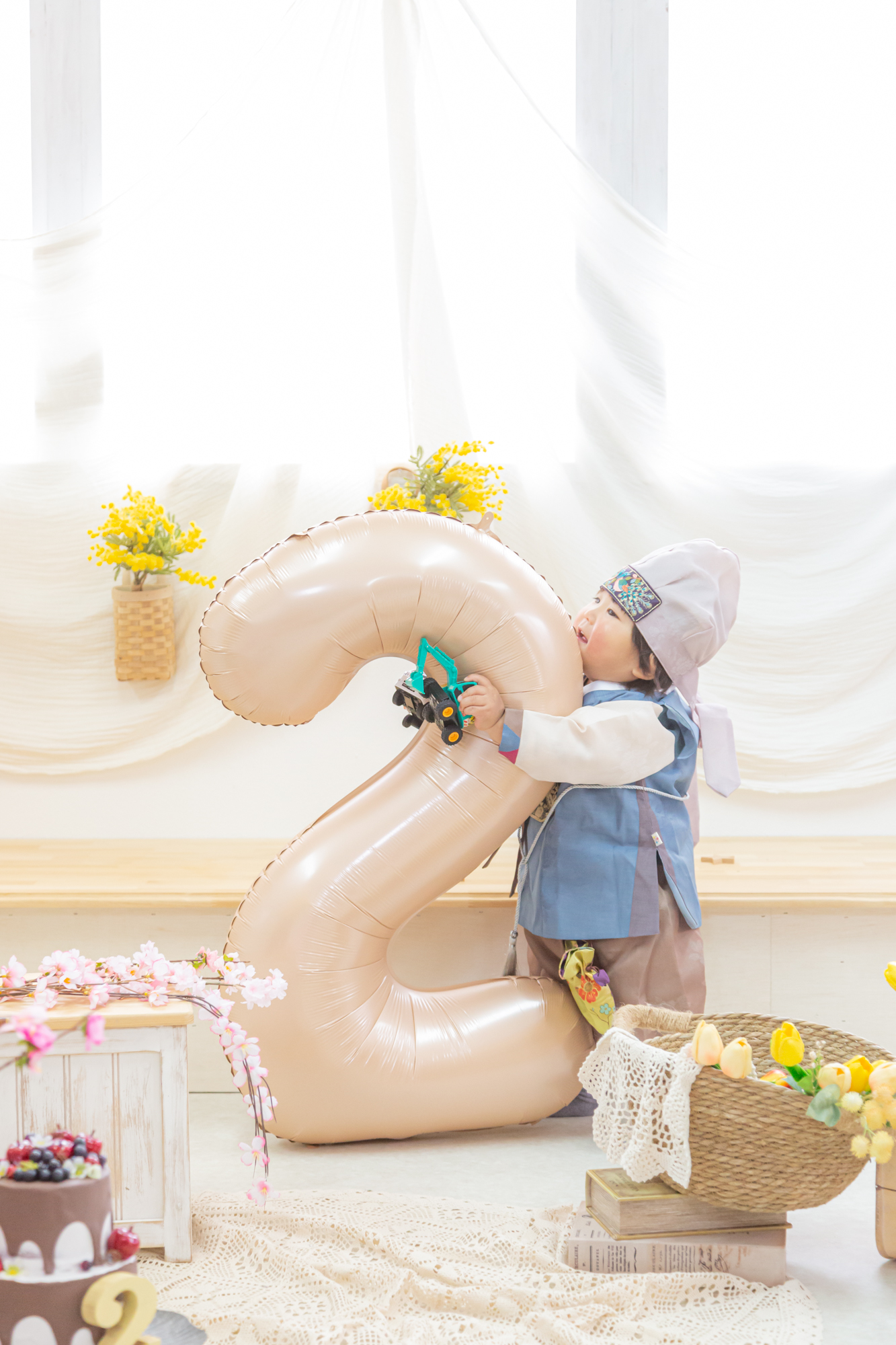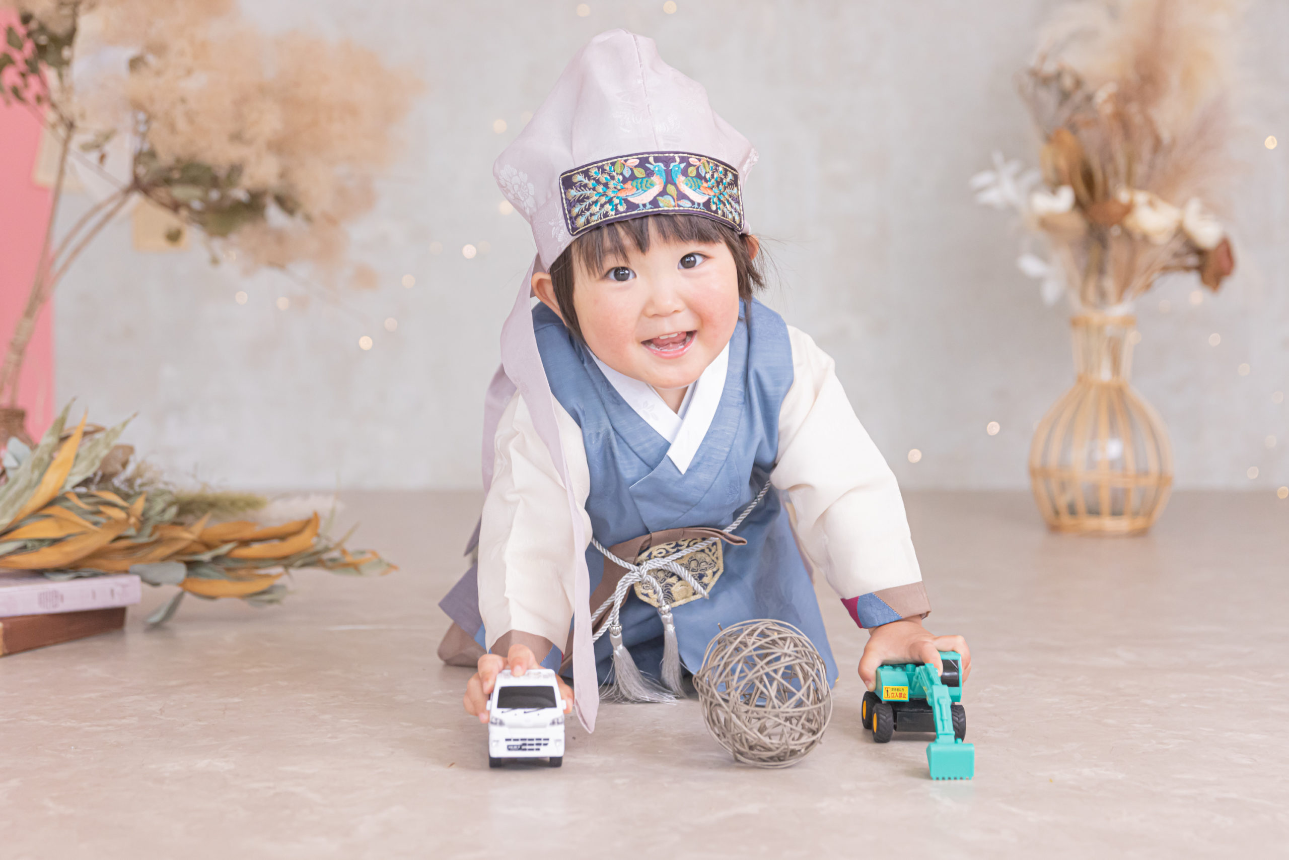 2023.04.25 ブログ 2歳バースデーBOY-2 衣装チェンジしてご機嫌な僕♪ お父様が韓国の方でチョゴリに着替えました〜! 大好きなおもちゃも一緒に最後まで沢山遊びました。 2歳のお誕生日おめでとう!🎂